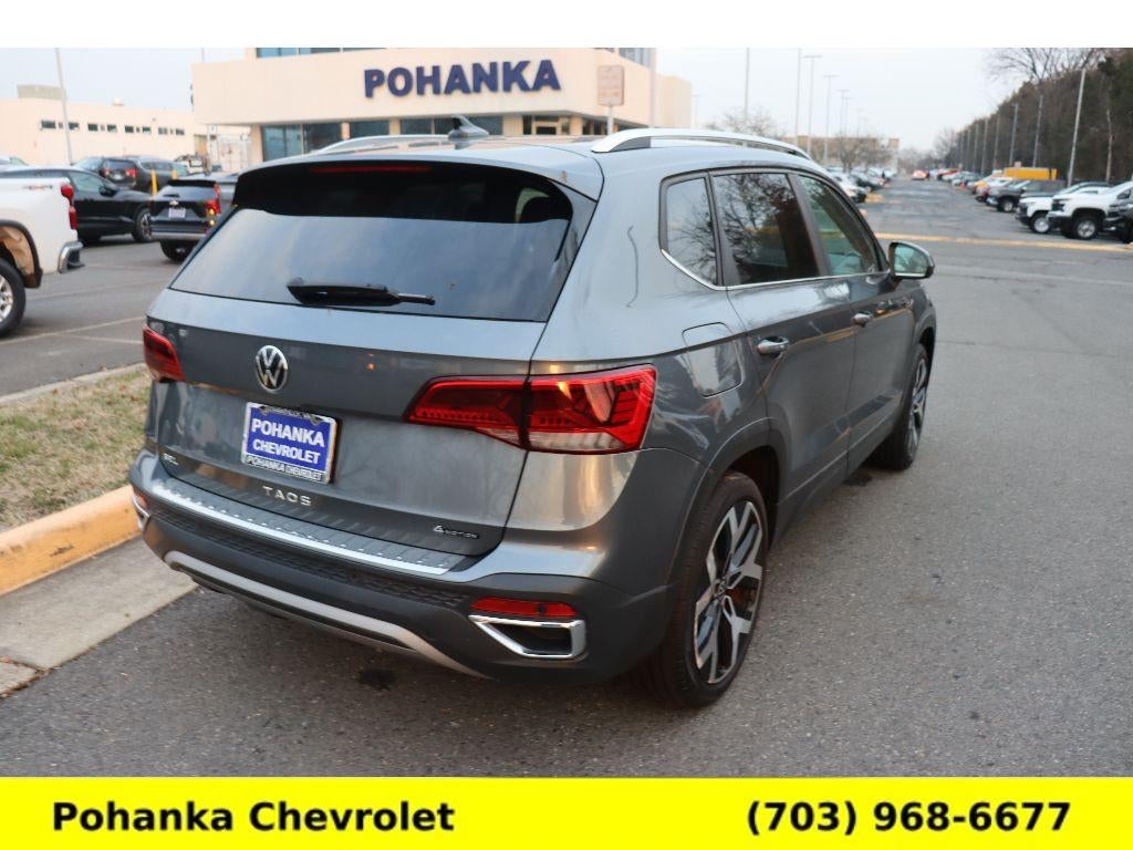 2023 Volkswagen Taos SEL AWD — located in Chantilly, VA — offers an exceptional blend of efficiency, comfort, and confident handling. Powered by a responsive 1.5L 4-cylinder gasoline engine paired with all-wheel drive, this Volkswagen Taos delivers precise steering, composed rides on varied roads, and strong fuel economy for daily commutes or weekend escapes. The SEL trim elevates convenience and technology with premium amenities including automatic climate control for personalized comfort, hands-free Bluetooth® for seamless phone and audio connectivity, and a back-up camera that enhances visibility during parking maneuvers. Safety-focused features include Forward Collision Warning and rear parking sensors to help prevent accidents and make low-speed maneuvering easier in crowded lots. The interior offers a well-crafted cabin with supportive seating and thoughtful storage solutions, while infotainment controls are intuitive and driver-focused. Exterior styling is modern and practical, with roof rails and compact dimensions that simplify city driving and garage parking. Located in Chantilly, VA, this model is competitively priced and represents the best value available — an excellent opportunity to own a well-equipped, reliable compact SUV without compromise. Schedule a test drive today to experience the responsive engine, composed AWD capability, and advanced safety features firsthand. Financing options are available to suit a variety of budgets.